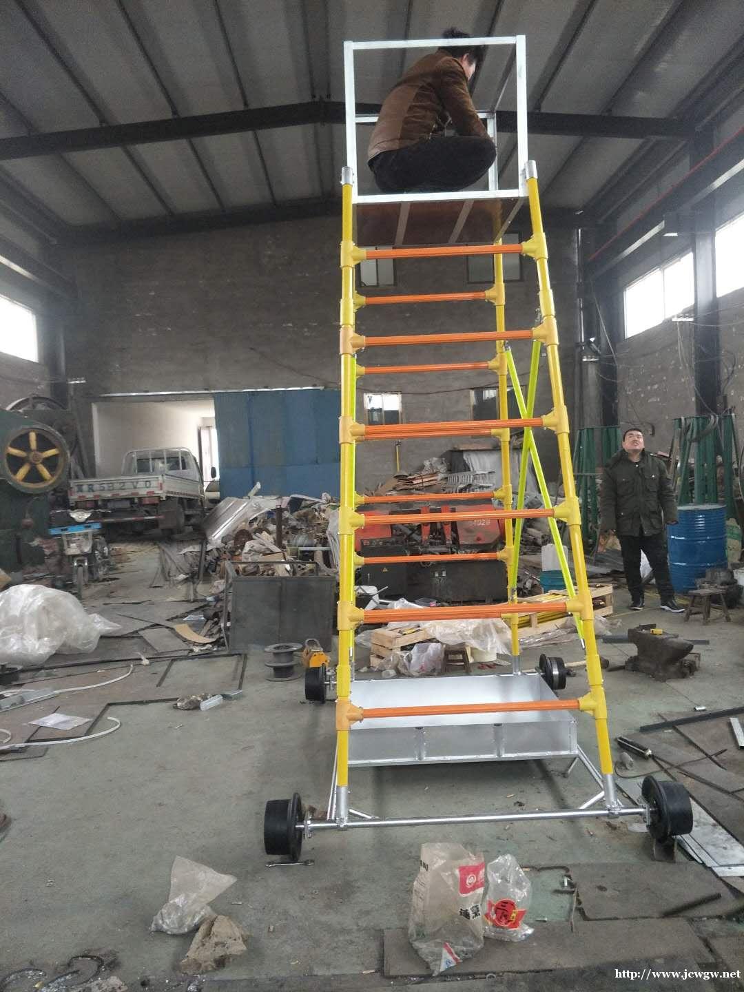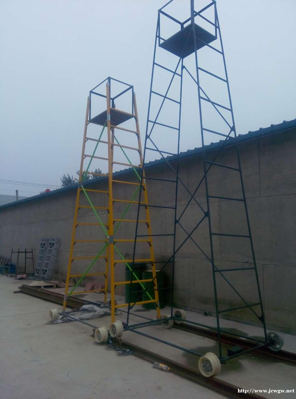 钢制梯车:壁厚3.5;高度4.5米-6.5米;绝缘梯车;材质ABS环氧树脂;高度3.5米-5.6米;铝合金梯车:材质高强度工业铝合金;高度4.5米-5.6米;升高高度:4.6米-6.8米,采用高强度稀土尼龙轮,安全牢固。可以在钢轨上滑行作业。